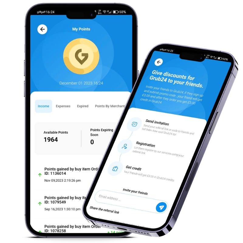 Drive lifetime value with Grub24 loyalty and pointing system.